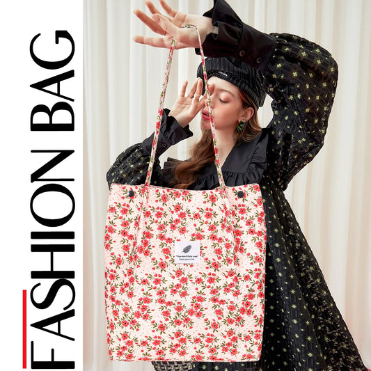 Corduroy Tote Bag with Inner Pocket, Large Canvas Shoulder Bag for Women and Girls